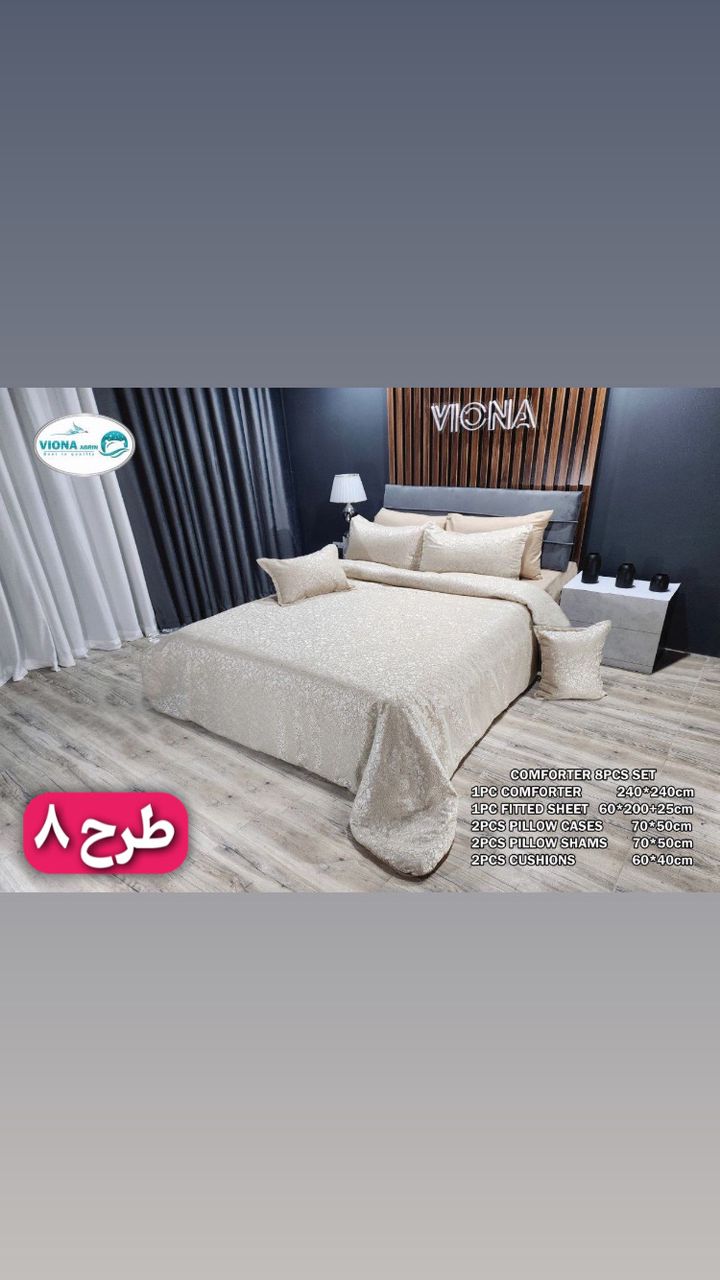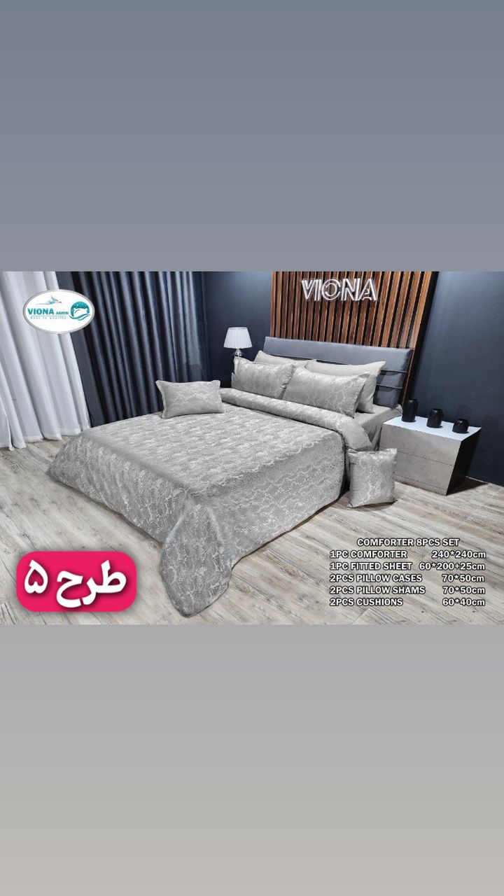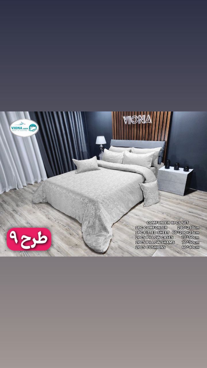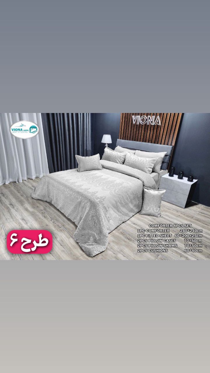 ۸ تکه کامل شامل لحاف، ملحفه کشدار، ۴ عدد روبالشی و ۲ کوسن – همه آنچه برای یک تخت کامل نیاز دارید.