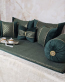 ✅ست ۸ تکه کامل شامل: دو روبالشتی، دو رو کوسنی مربع، یک کوسن پاپیونی، دو روبالش لولهای و یک تشک همه موارد پرشده است