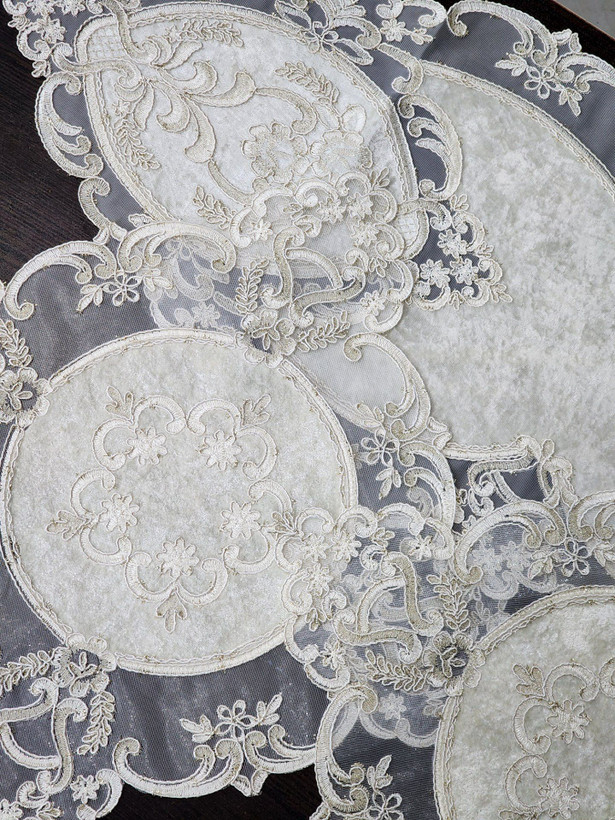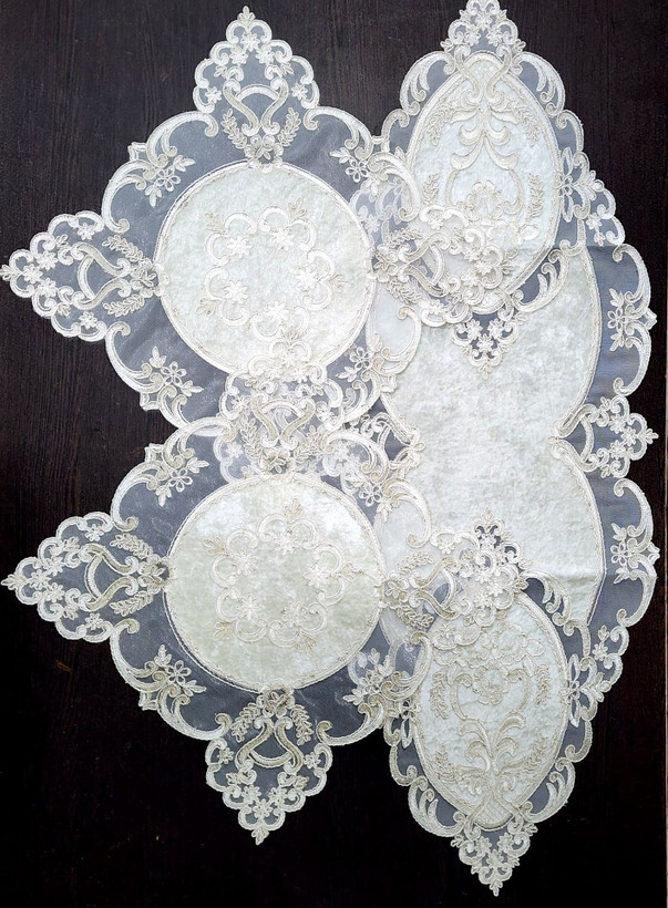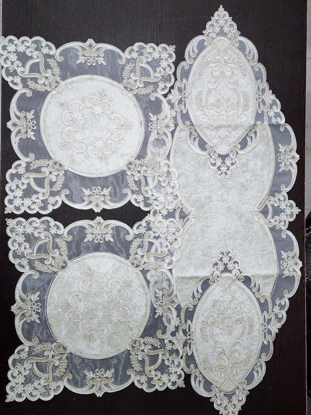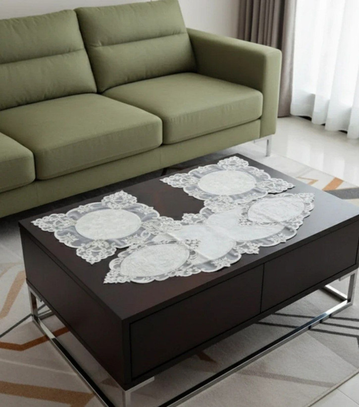 اگر به دنبال یک رومیزی ظریف و چشمنواز برای زیبایی بیشتر دکوراسیون منزل هستید، این ست دانتل حریر انتخابی عالی است. ترکیب لطافت حریر با طرح زیبای دانتل جلوهای لوکس به میز پذیرایی شما میدهد.