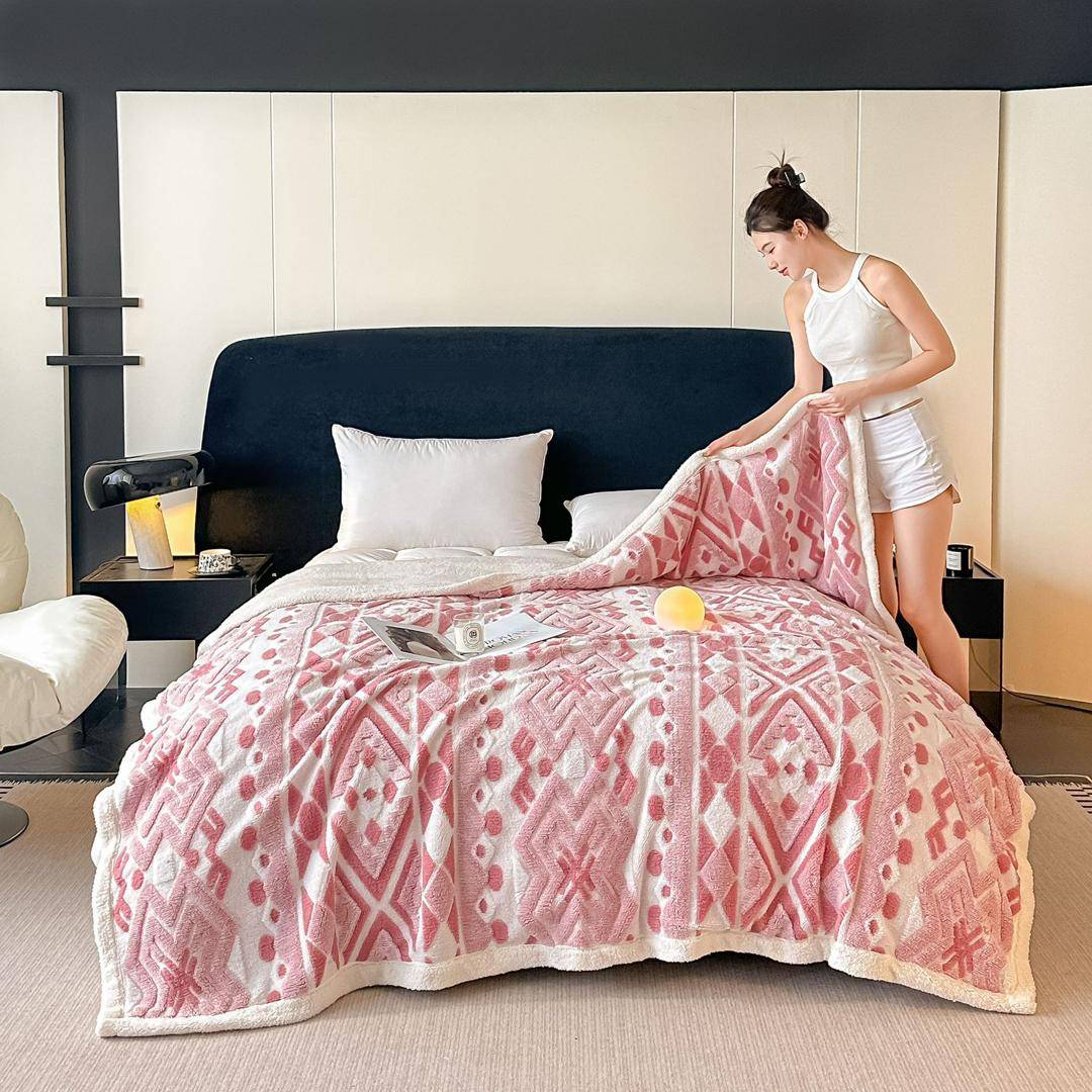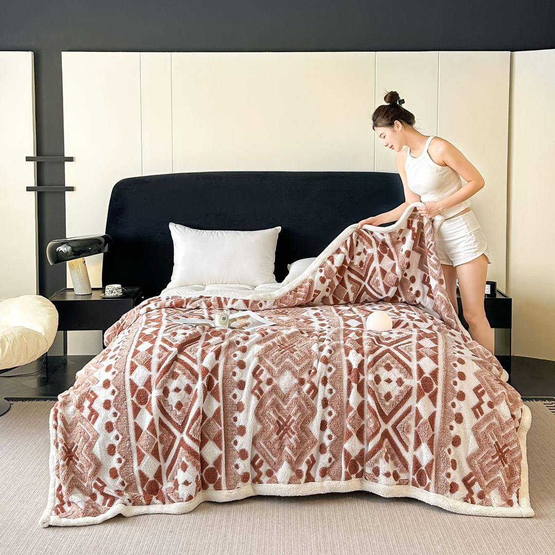 پتو تدی دونفره طرح هندسی وارداتی از جنس ابریشم بسیار نرم